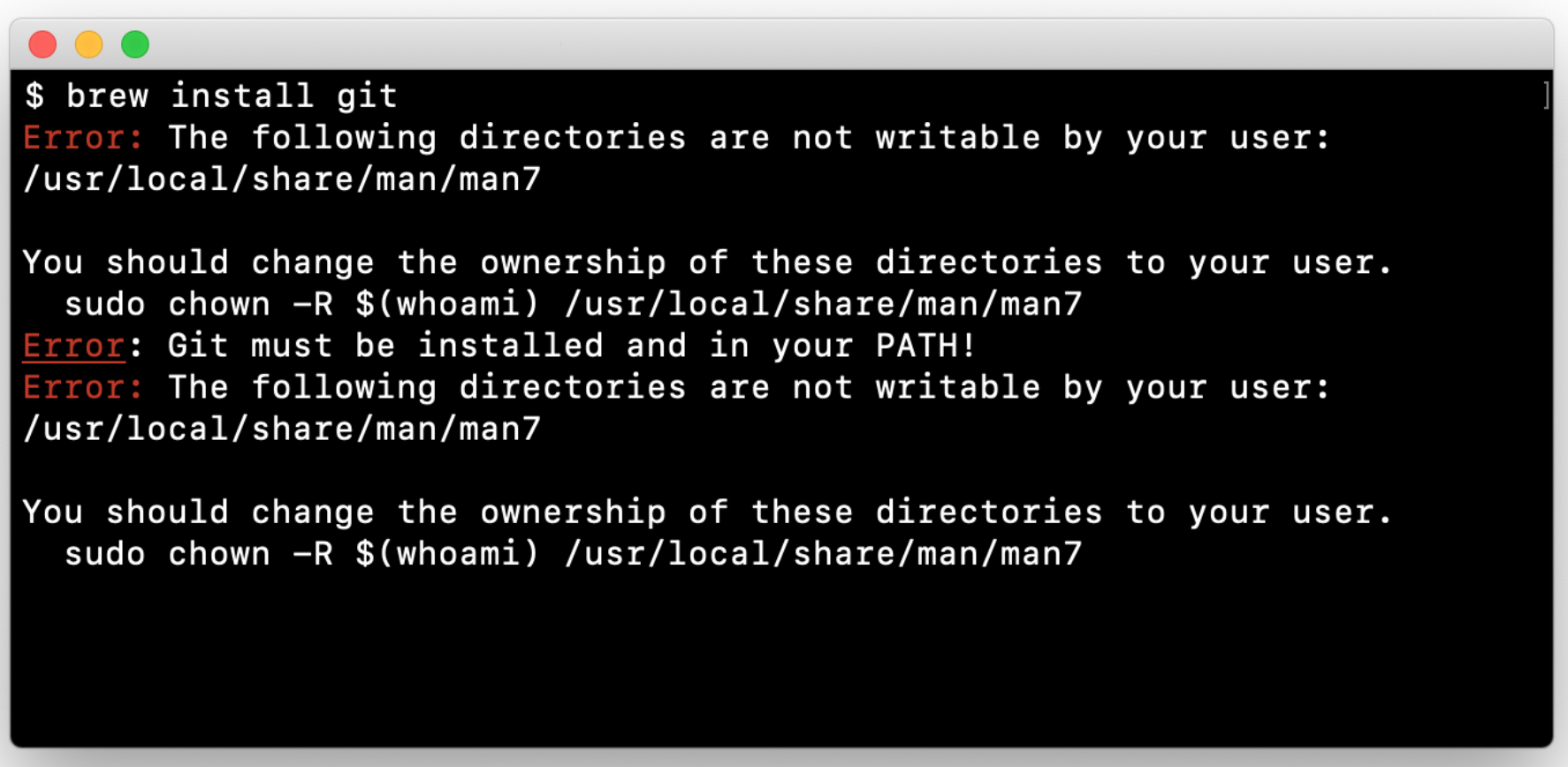$ sudo chown -R $(whoami) /usr/local/share/man/man7