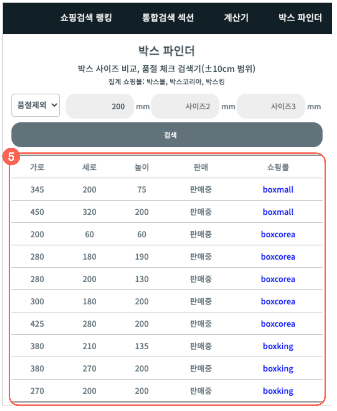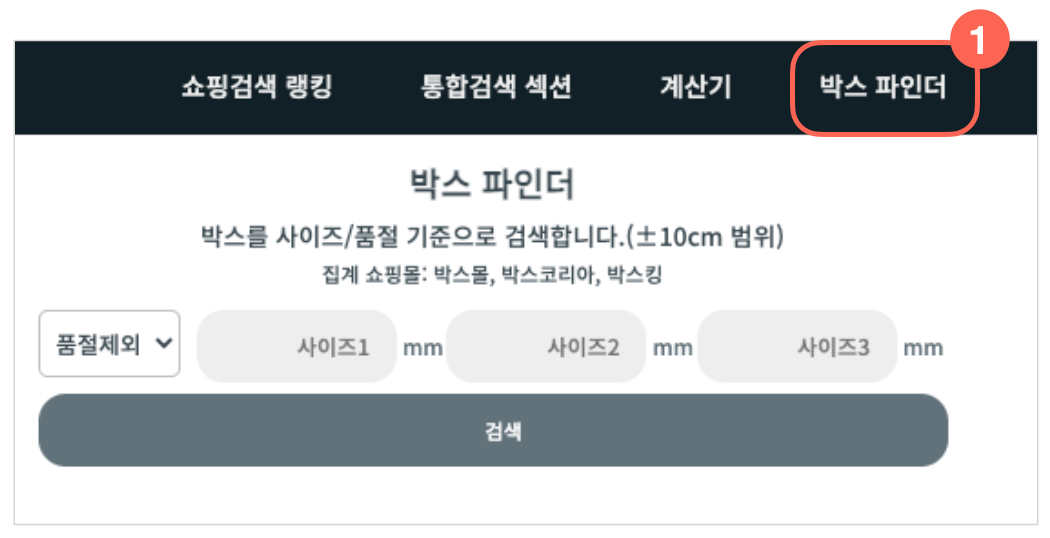 : 가로, 세로, 높이 순서와 상관없이 원하는 사이즈의 박스를 찾을 수 있습니다.