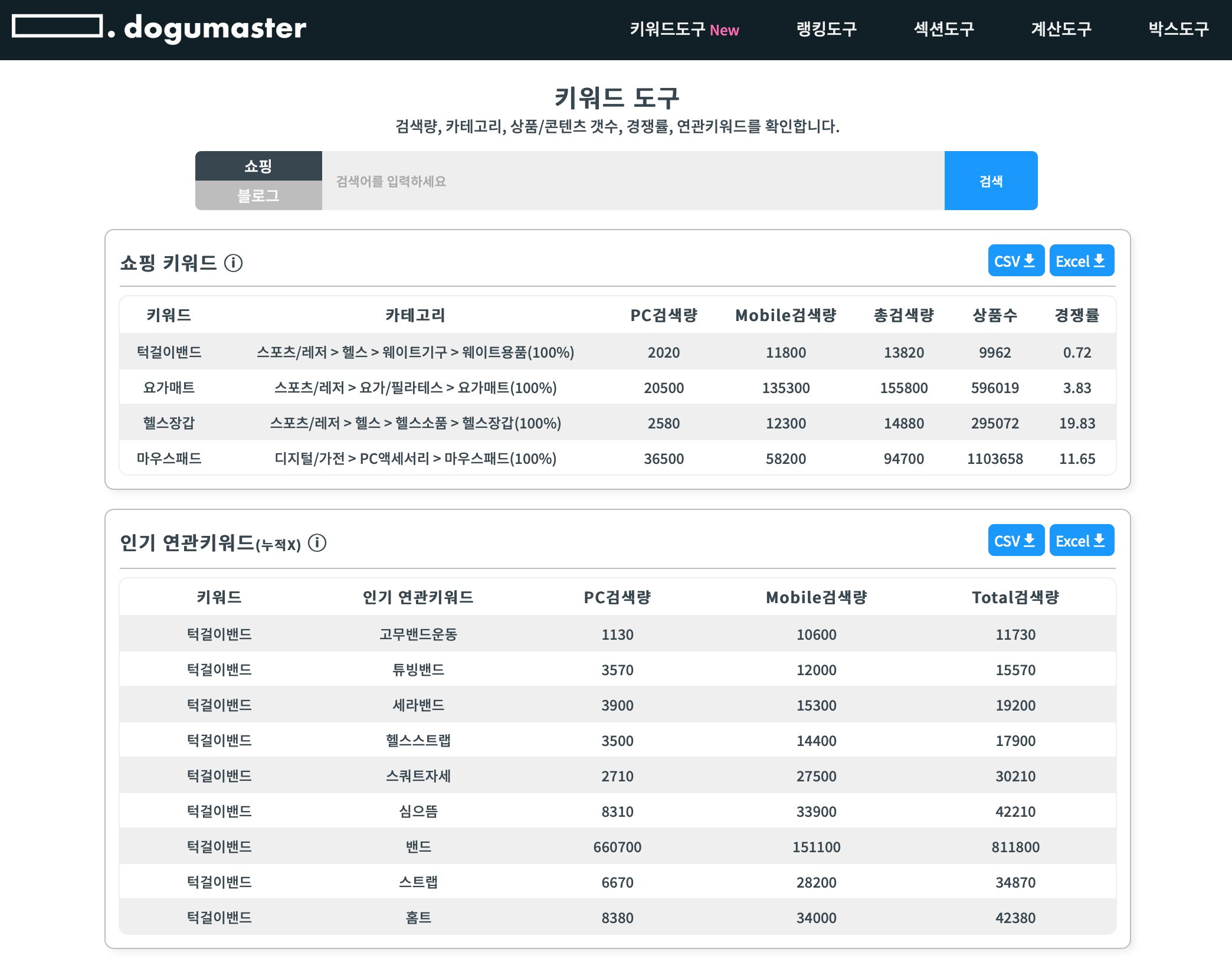 : 검색한 결과를 모두 CSV, 엑셀로 다운로드 가능