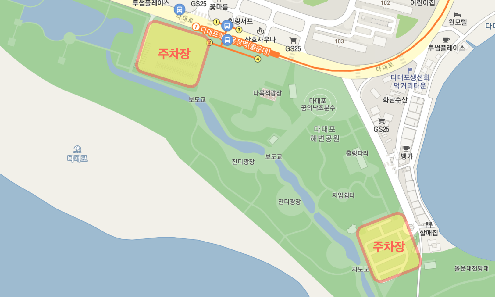 지하철은 1호선 다대포해수욕장역 2번/4번 출구로 나오시면 됩니다.