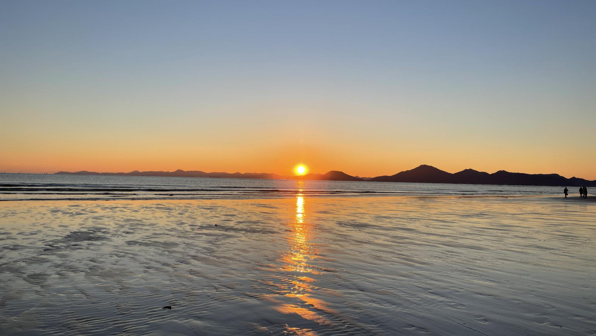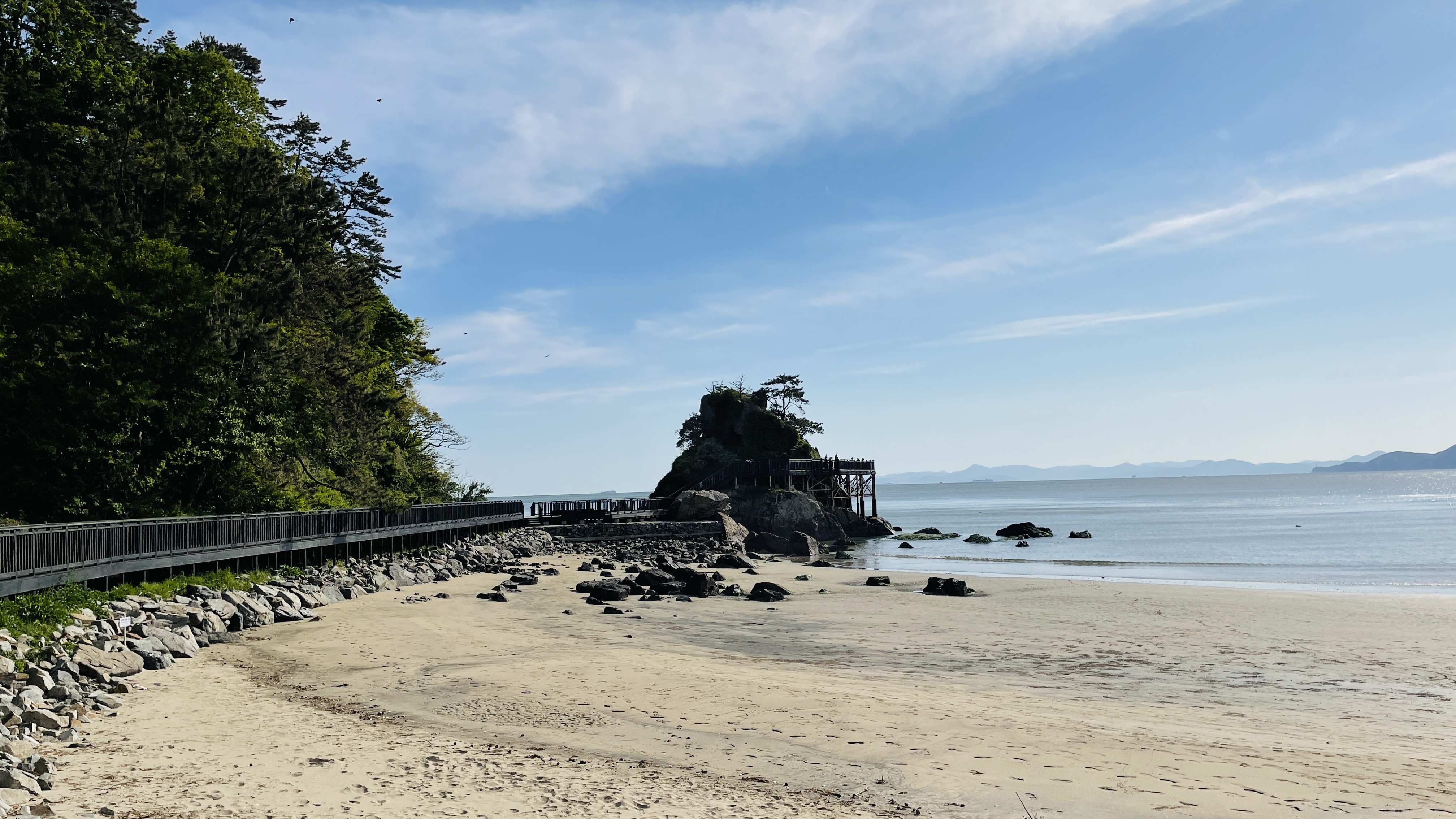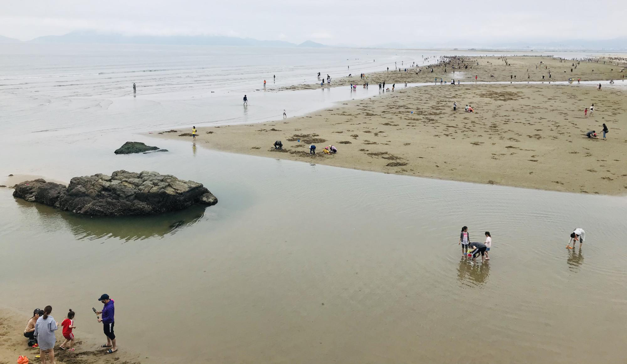 모래사장이 아주 넓고, 갯벌이 함께 있는 특이한 해변입니다.