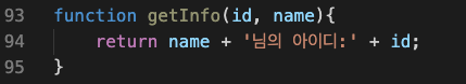 ▶︎ 여기서는 id, name을 파라미터로 받아서 반환하는 getInfo 함수를 선언했다.