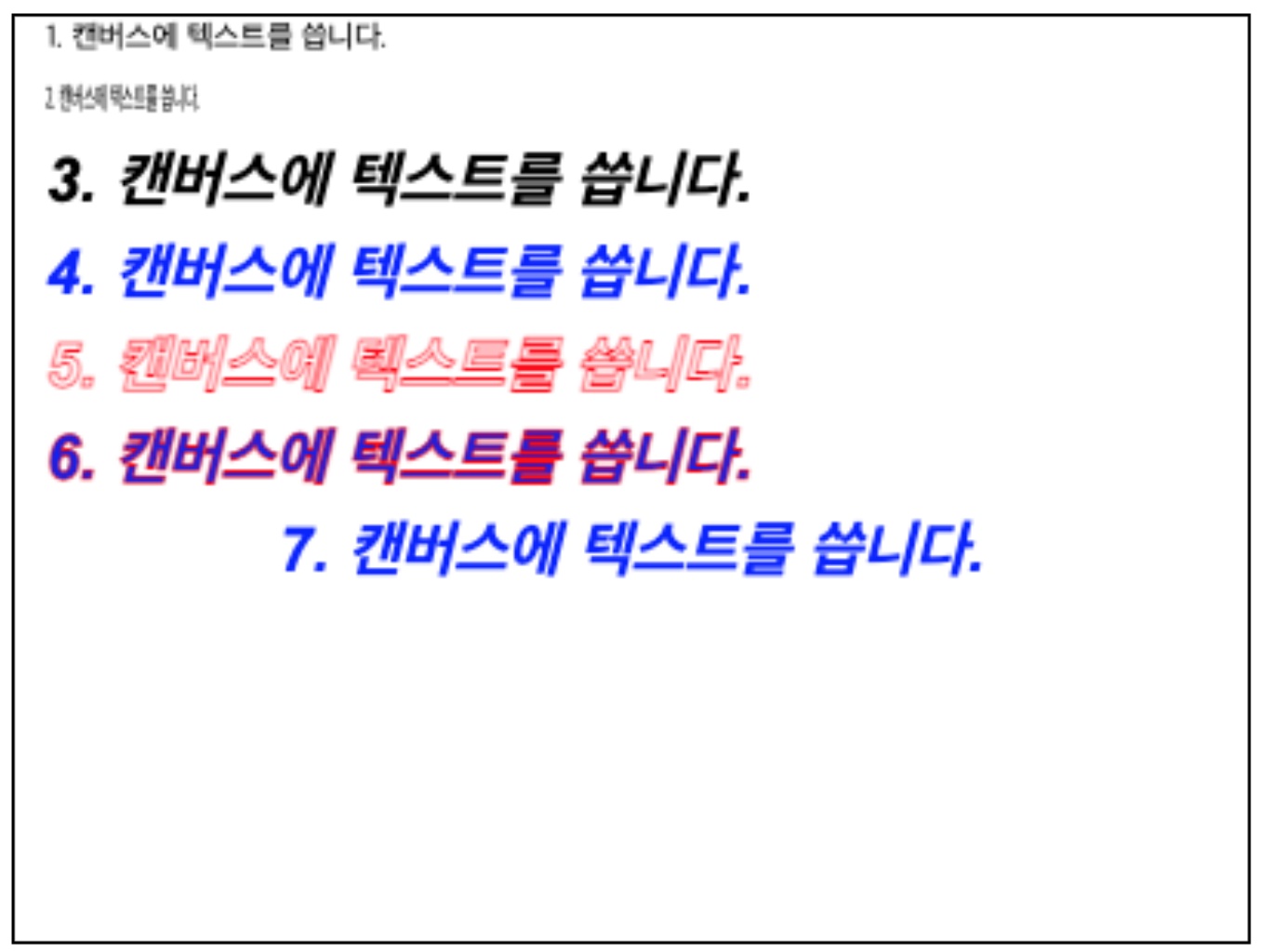 캔버스에 다양한 스타일의 테스트를 그려보는 예제
