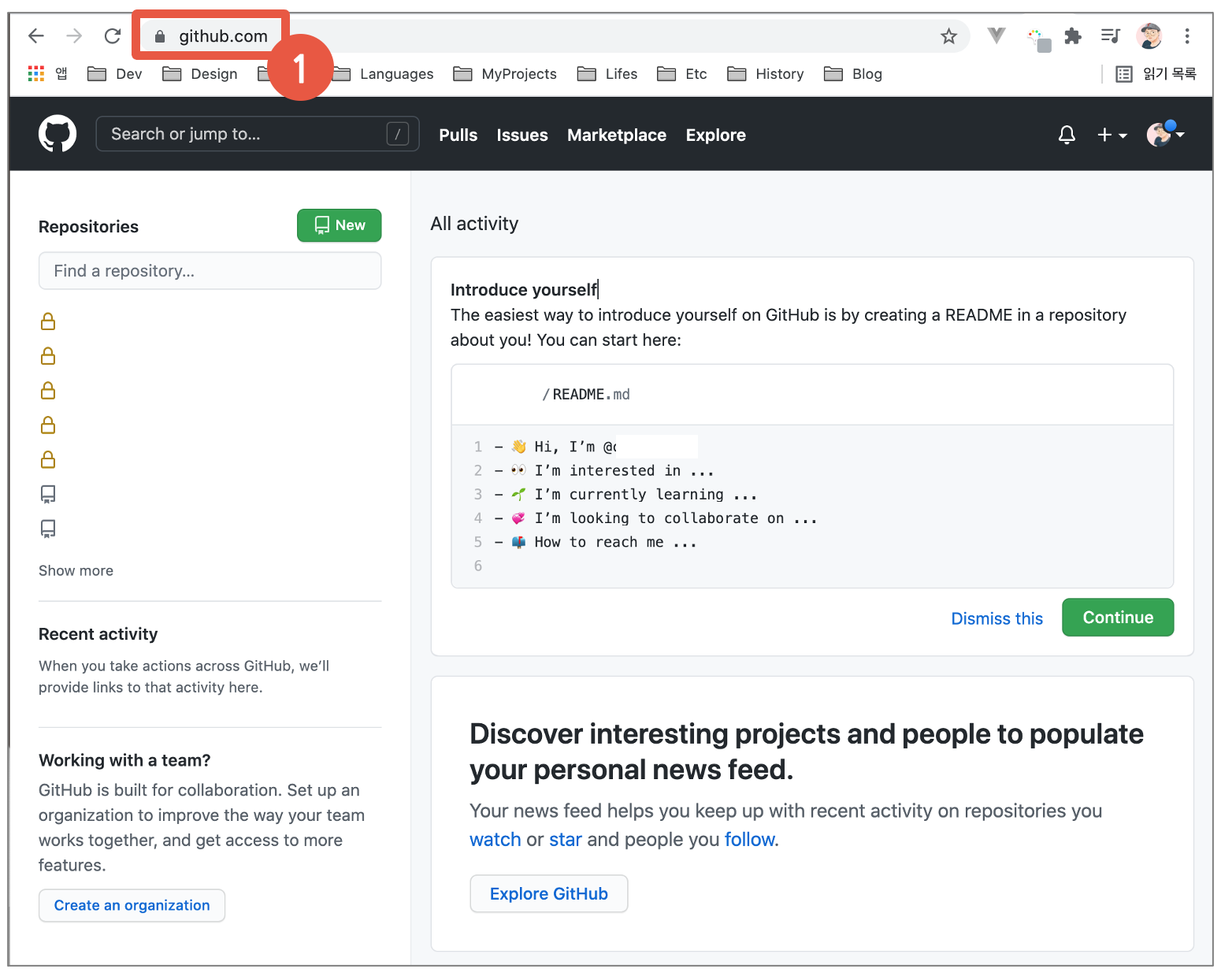 1. GitHub.com 접속 및 로그인