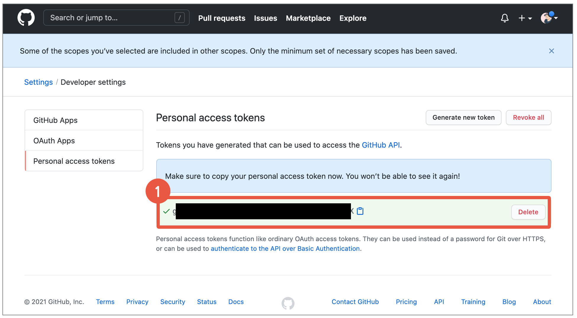 7. Personal Access Token 확인 및 복사