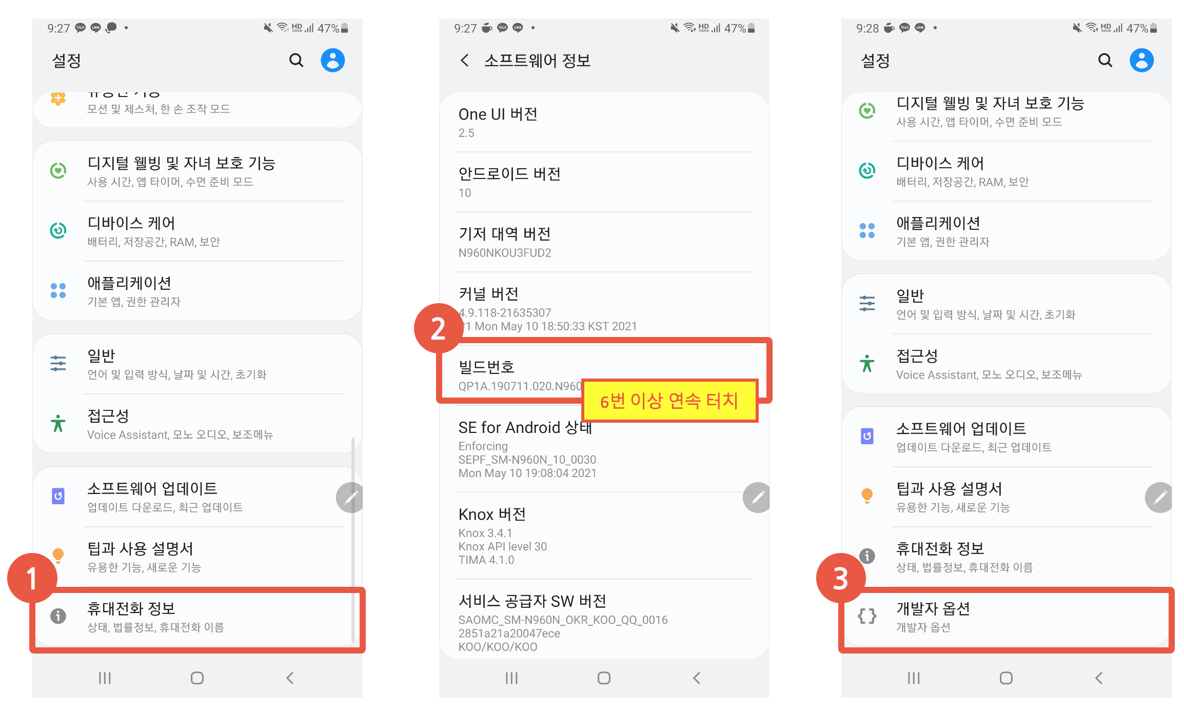 3) 개발자 옵션 메뉴 진입