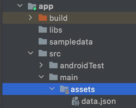 - assets 경로에 .json 파일을 저장한다. (복사 붙여넣기를 해도 되고, 직접 생성해도 된다)