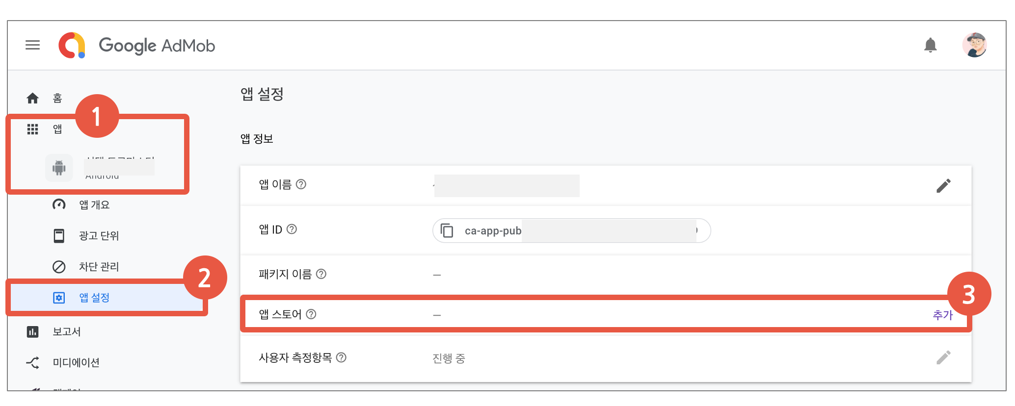 2. 해당 앱의 광고 단위(배너 광고 등)를 생성하고,
