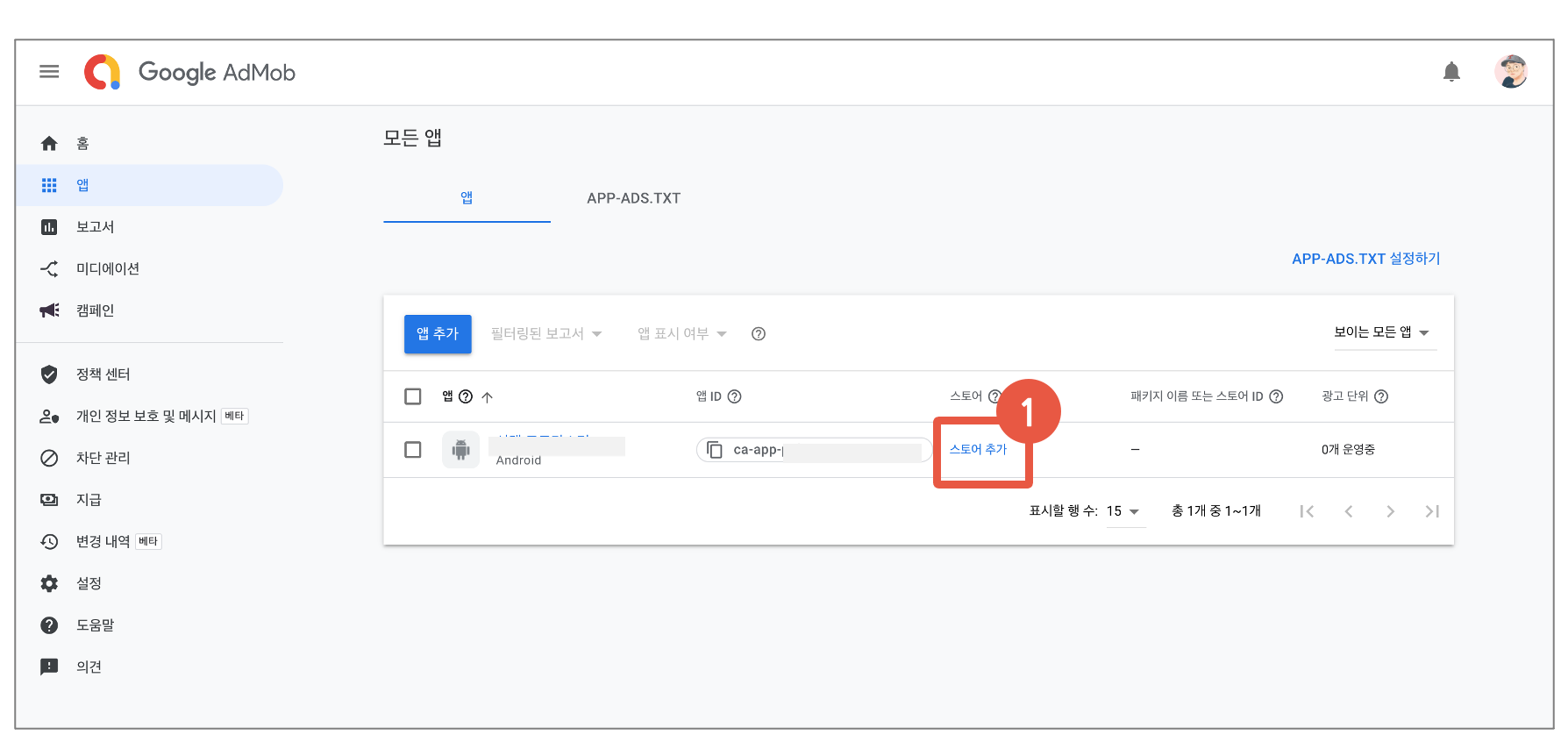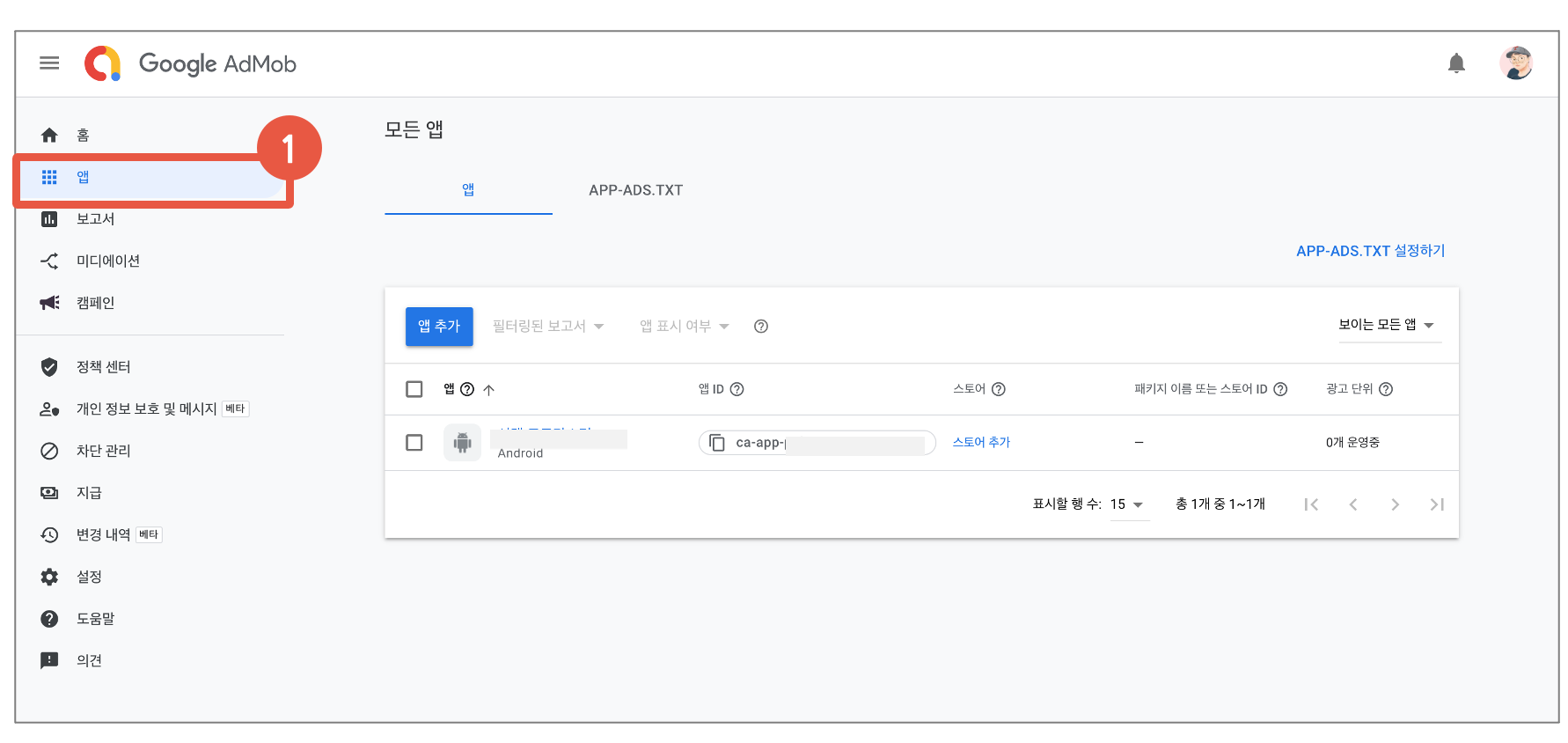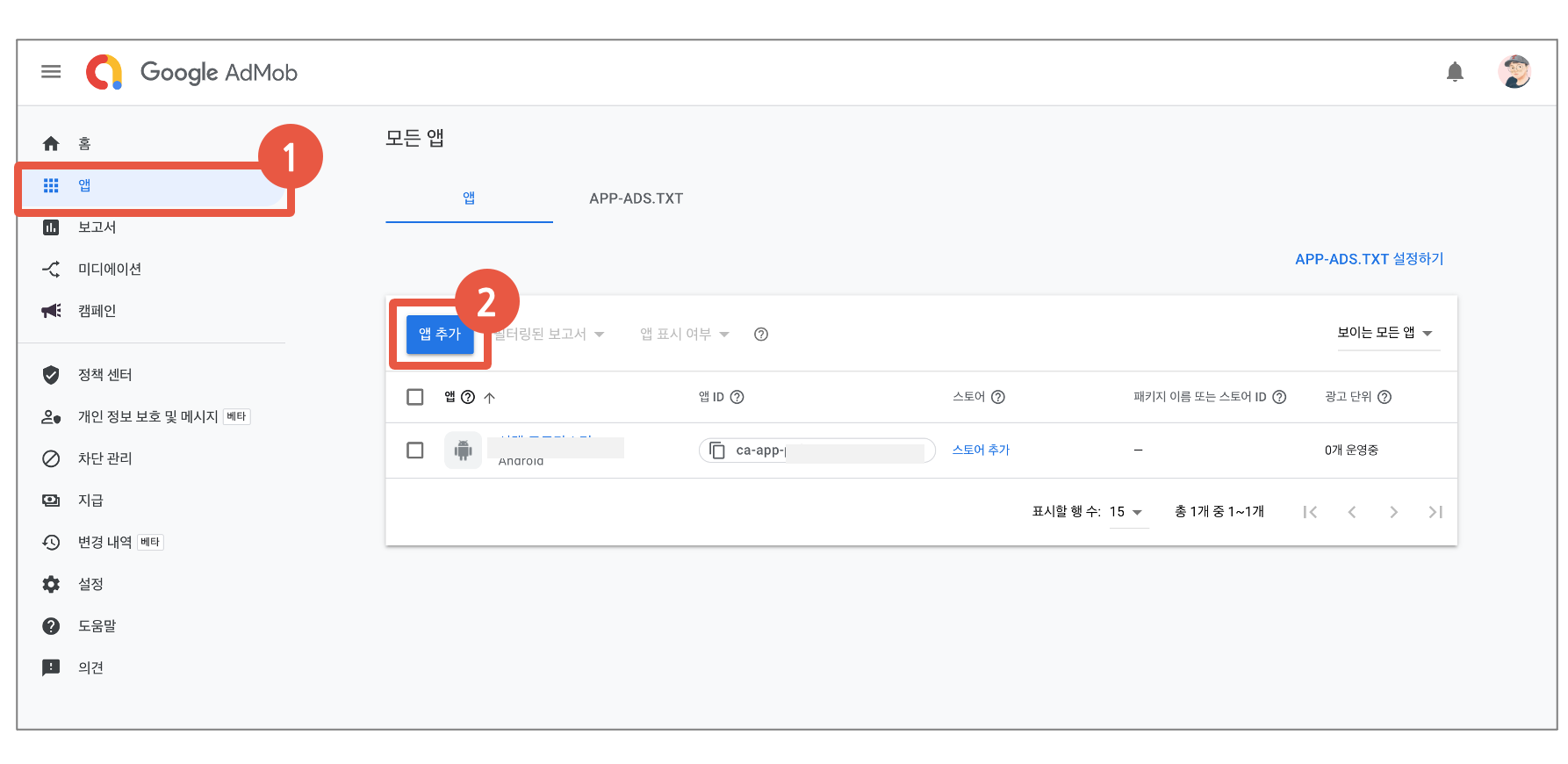 1번 "Admob에 앱을 등록하는 방법"과