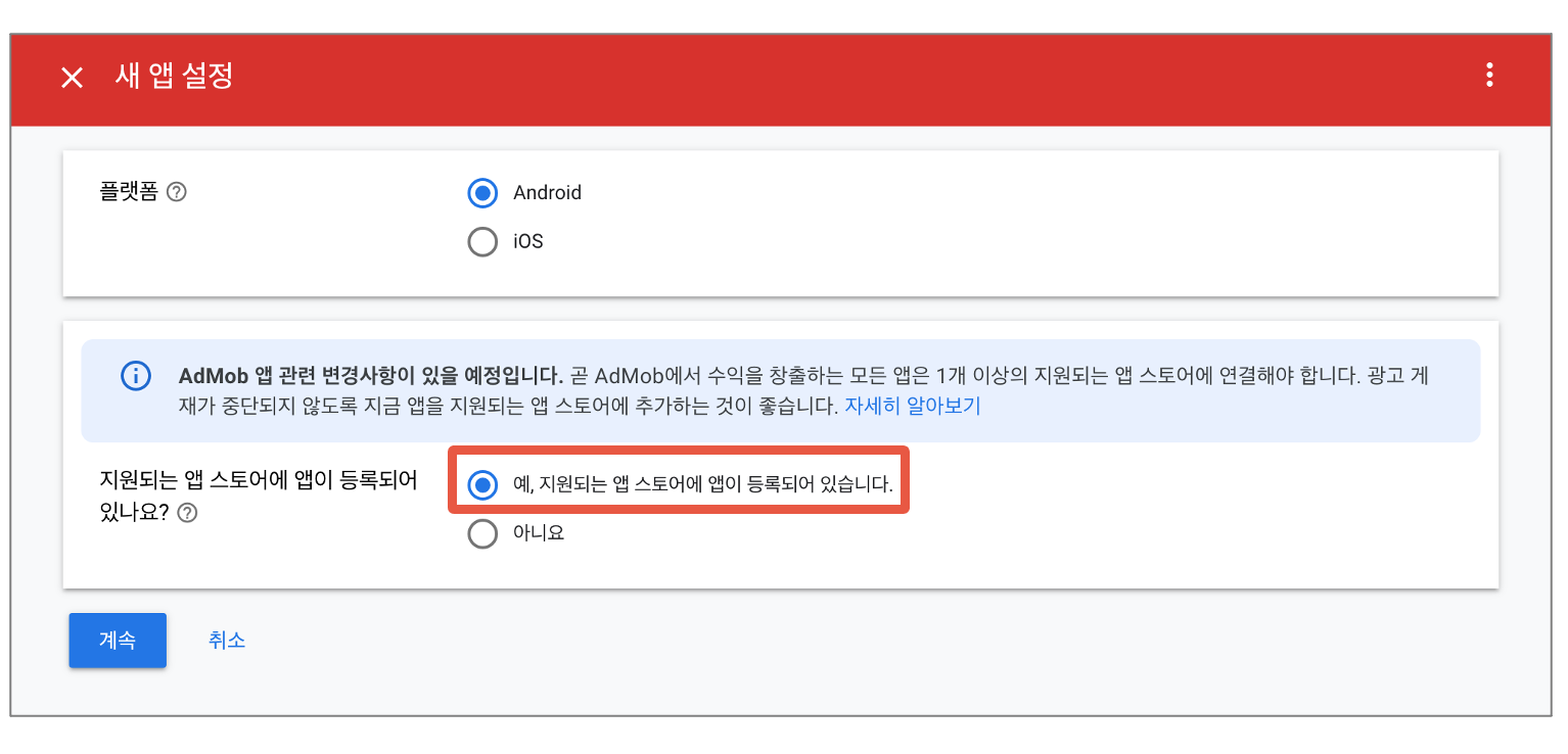 스토어에 등록된 앱이 없는 경우에도, Admob에 앱을 추가하고 광고단위를 설정할 수 있다.