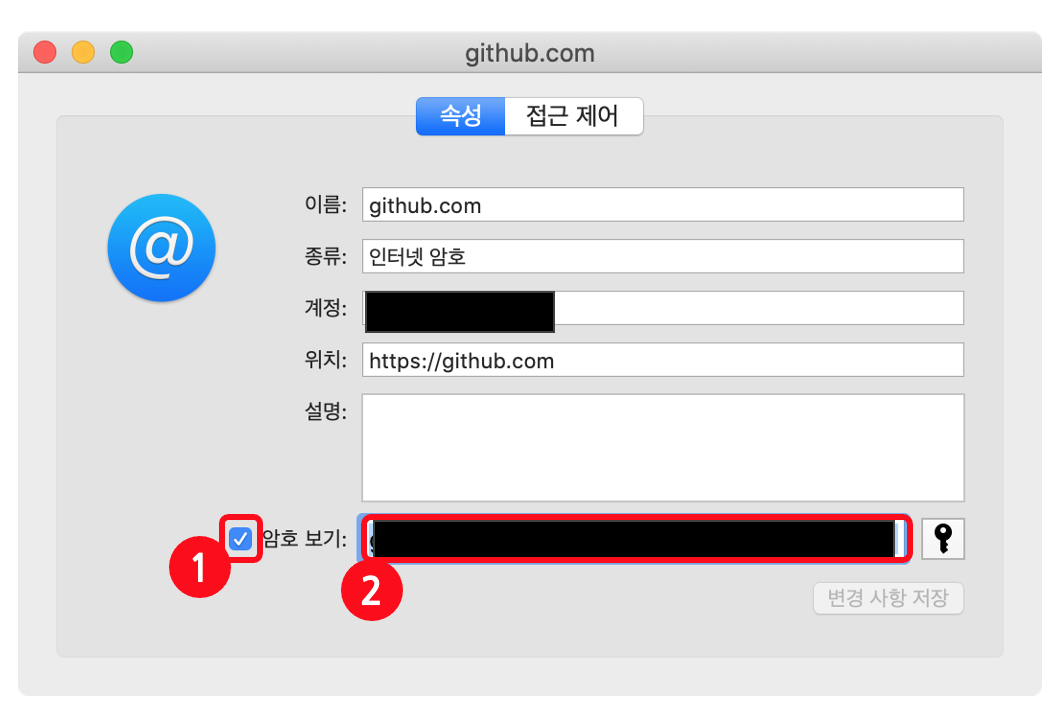 3. 암호보기 항목을 체크후, 기존의 패스워드를 발급받은 Access Token 으로 변경한다.