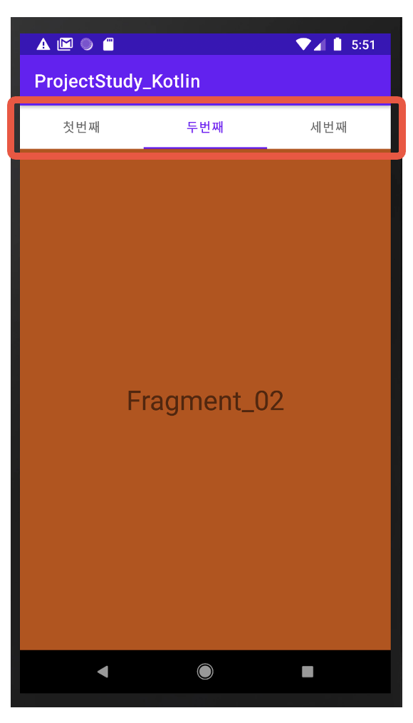 ViewPager2에 TabLayout을 연동하면, 아래와 같이 탭메뉴를 추가할 수 있다.