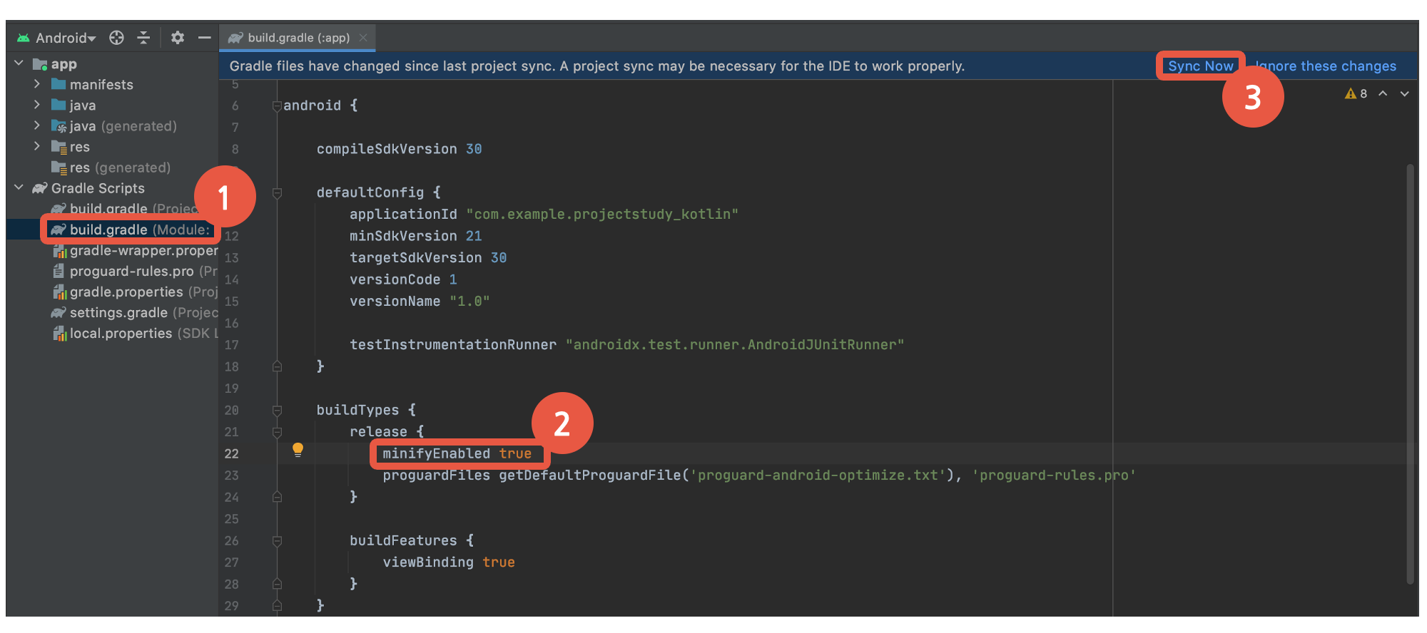 2. Release 버전의 Proguard 난독화 설정: minifyEnabled 를 true로 설정