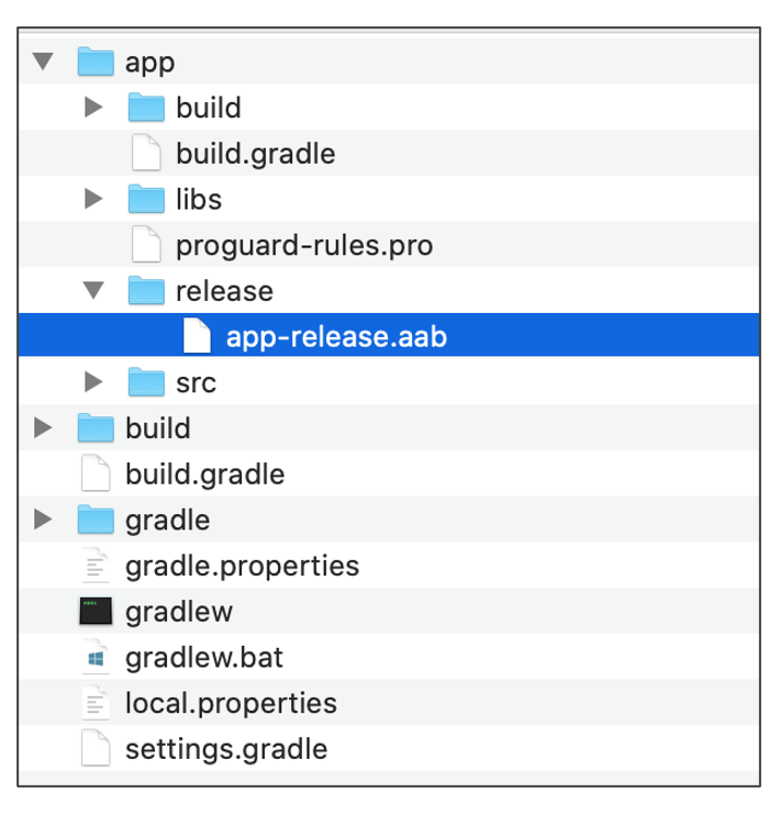 - 프로젝트폴더 > app > release 경로에 빌드된 AAB파일이 생성된다.