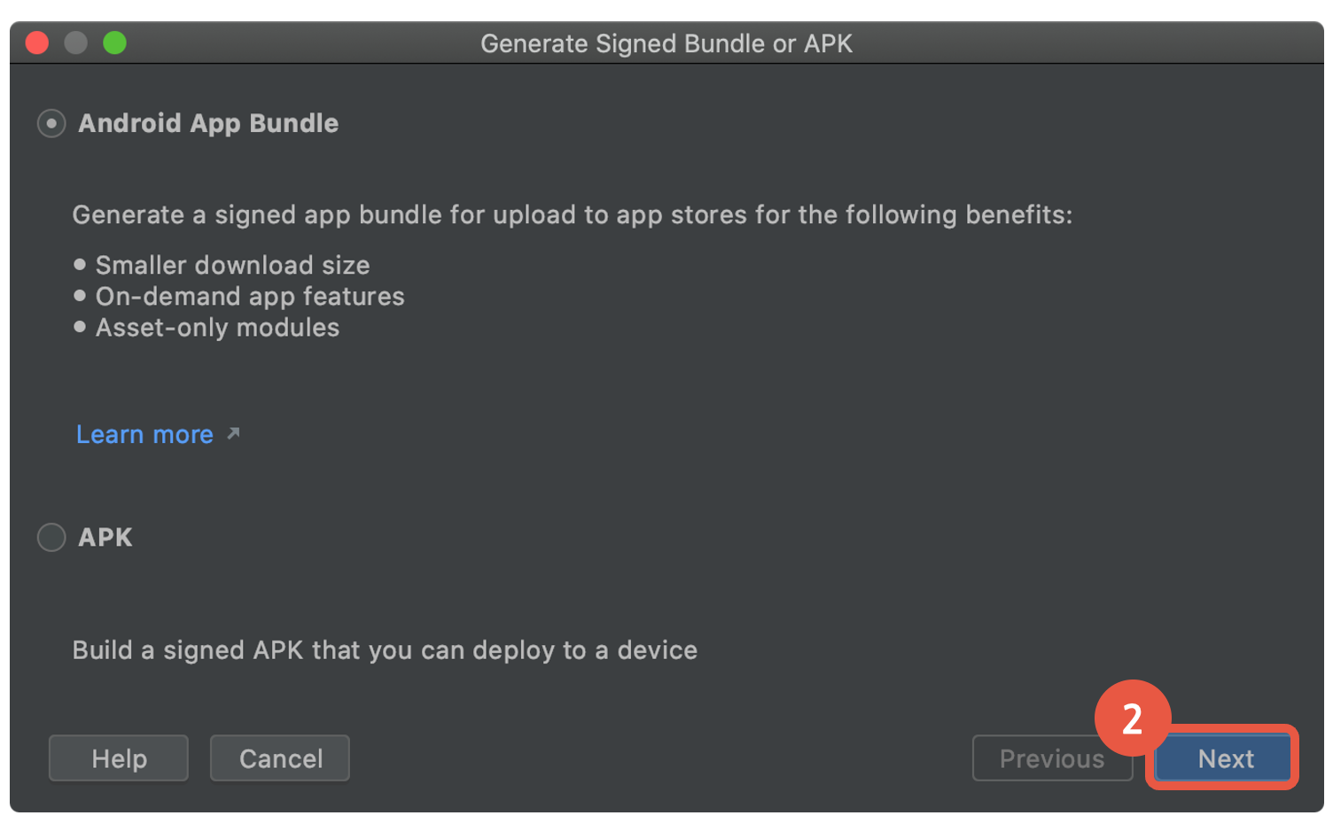 2) AAB(Android App Bundle)가 선택된 상태에서 NEXT 클릭
