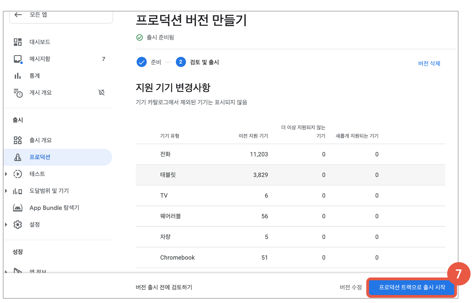 7) "프로덕션 트랙으로 출시 시작" 버튼이 생성되면 클릭한다.