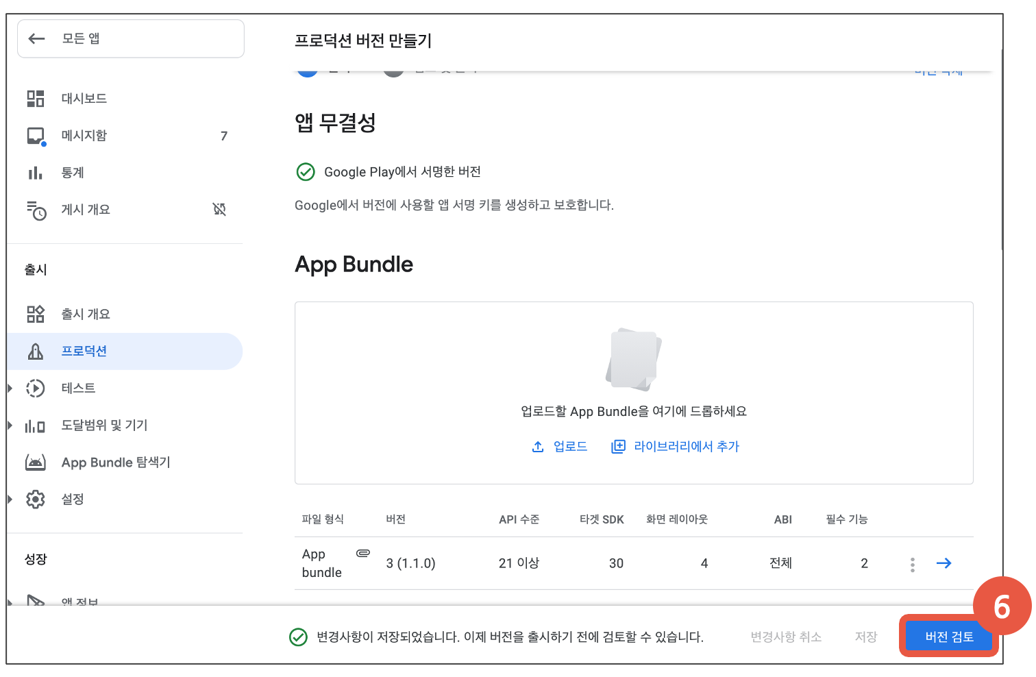 6) "버전 검토" 버튼이 활성화되면, 클릭한다.