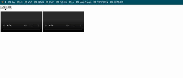 1) "시작" 버튼을 클릭하면 "첫번째 video" 태그에서 실시간 영상을 재생하고,