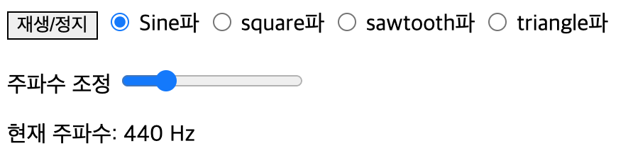 - 라디오 버튼으로 파형을 Sine, Square, Sawtooth, Traingle로 조정할 수 있다.