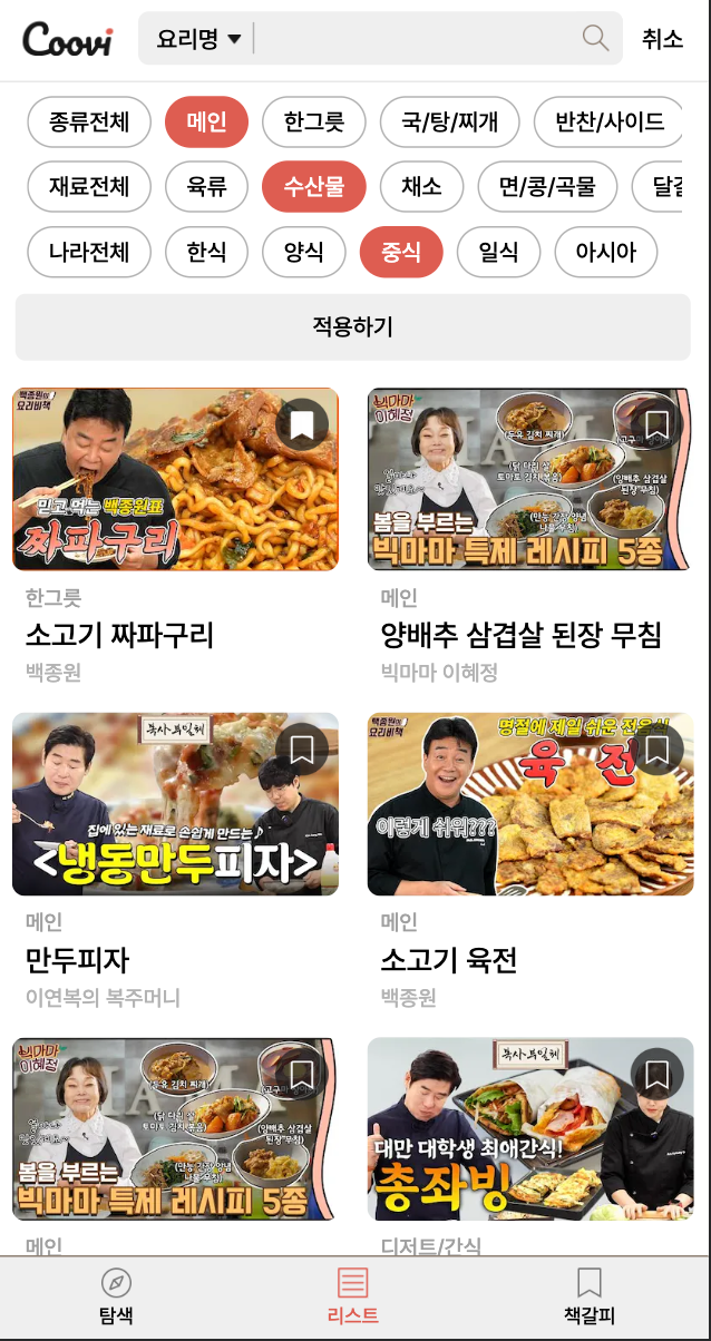 재료별/종류별 레시피 검색도 가능합니다!